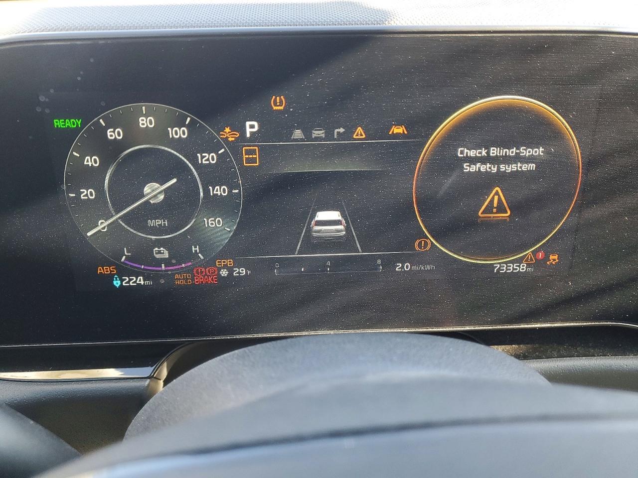 Этот Kia Niro EV классифицирован как кроссовер, цвет угольный. Пробег 73,358 миль, и ключи присутствуют.